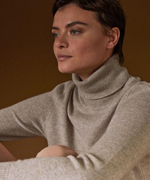 Découvrez notre pull col roulé marron taupe, confectionné en pure cachemire 2 fils. Cette pièce, emblématique de nos collections, allie élégance intemporelle à des détails modernes comme les fentes latérales et un raffinement dans le jeu de points sur les côtés. Offrez-vous le luxe et le confort avec cette essence du chic français. Pour un look parfaitement harmonisé, associez-le à un gilet et une écharpe en teinte monochrome.Taille normalement. Lais mesure 175 cm et porte du 38.