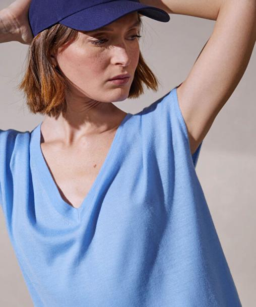 Vous serez séduite par la palette de couleurs aux teintes profondes et printanières de ce pull oversize sans manches bleu pâle tricoté en cachemire 2 fils ultra-doux. Qui a dit que le cachemire ne se portait pas l’été Surement pas Rodier qui a décliné une collection estivale à porter à fleur de peau avec le pantalon ou la jupe en satin pour souligner votre élégance naturelle.Ce modèle taille normalement. Clothilde mesure 177 cm et porte du M.